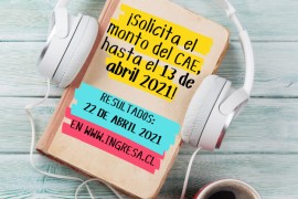 Se informa que el proceso de renovación CAE 2021, considera que el plazo para solicitar monto se extiende hasta el martes 13 de abril. El detalle de las características y etapas del proceso puede verificarse en la web www.ingresa.cl